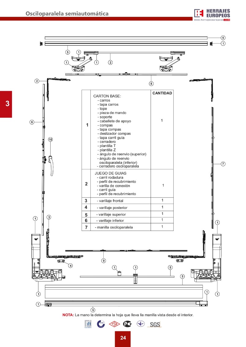 4 OSCILOPARALELA - HERRAJES PARA ALUMINIO CANAL 16, MANILLAS CON Y SIN LLAVE, DISTRIBUIDOR PARA T&T Y WINK HAUS