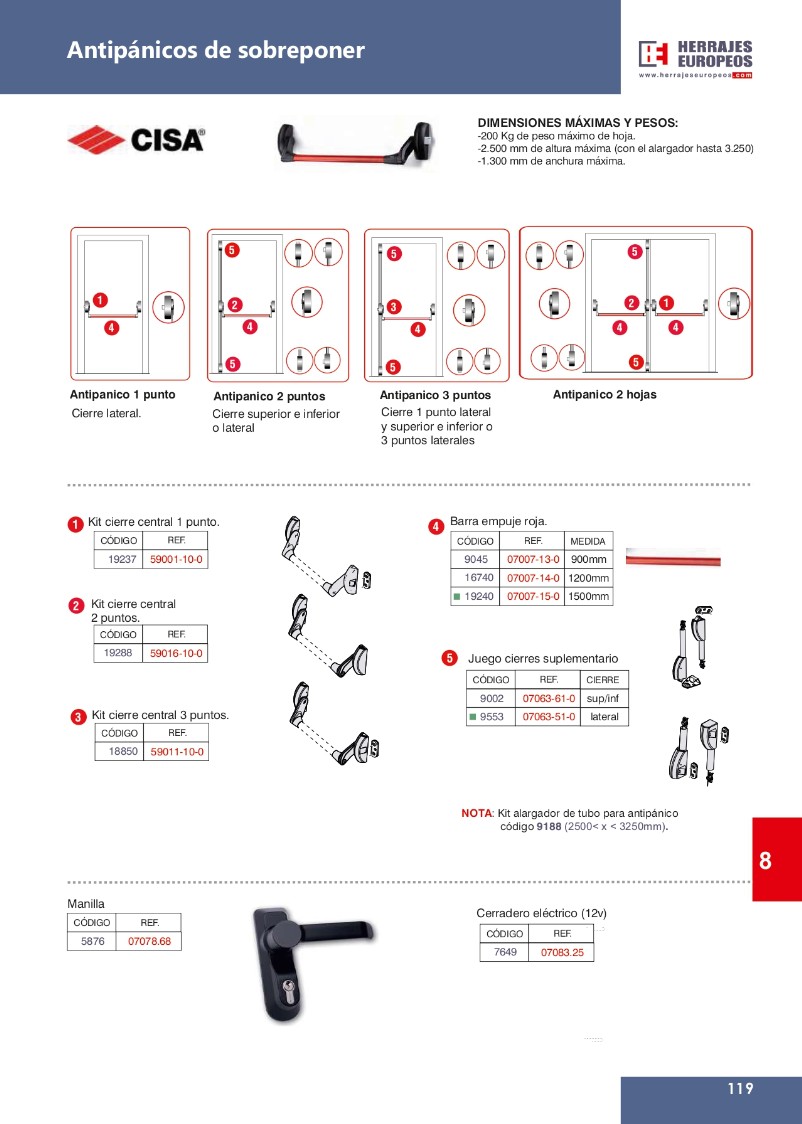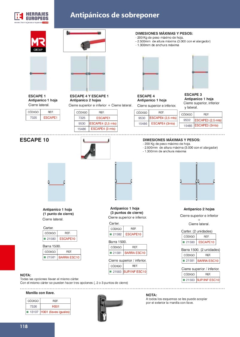 ANTIPANICO - HERRAJES PARA ALUMINIO CANAL 16, MANILLAS CON Y SIN LLAVE, DISTRIBUIDOR PARA T&T Y WINK HAUS