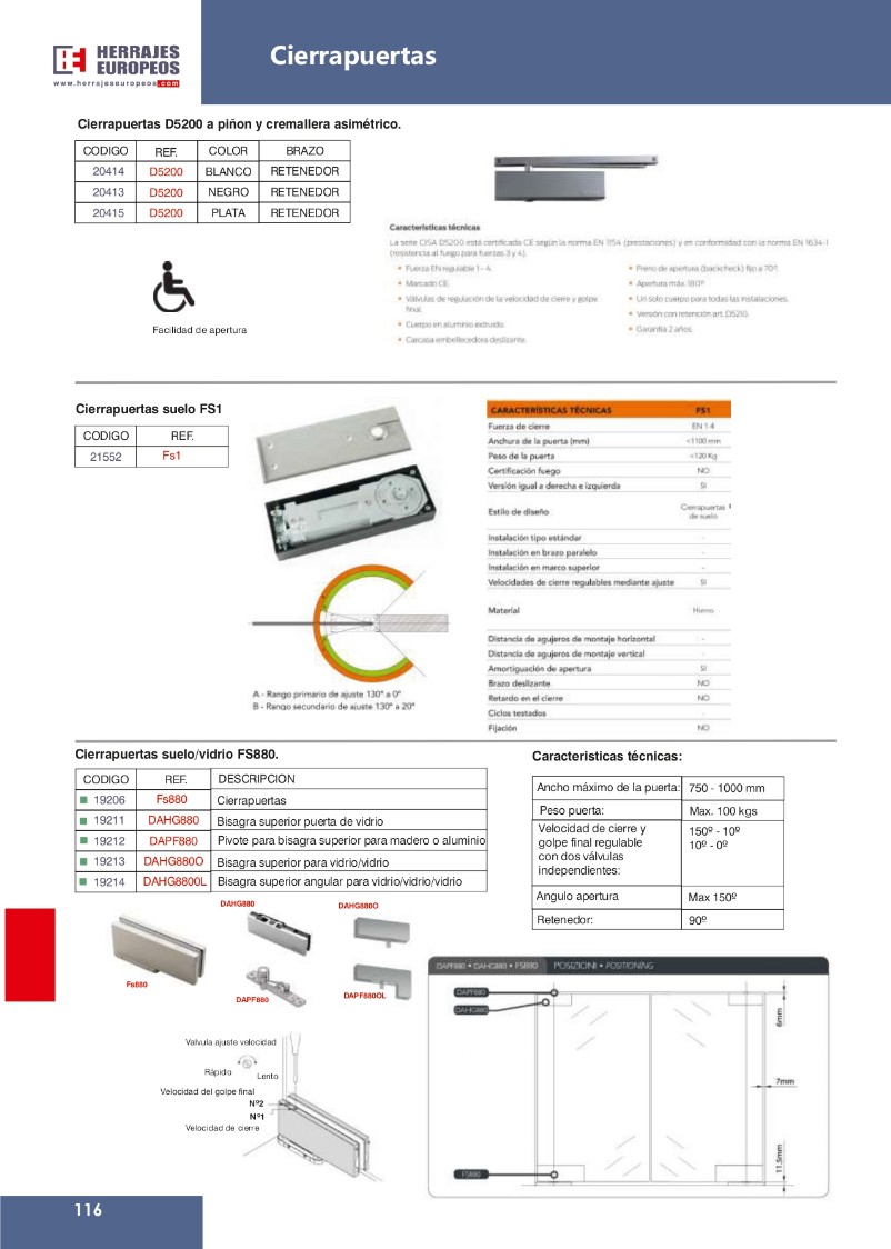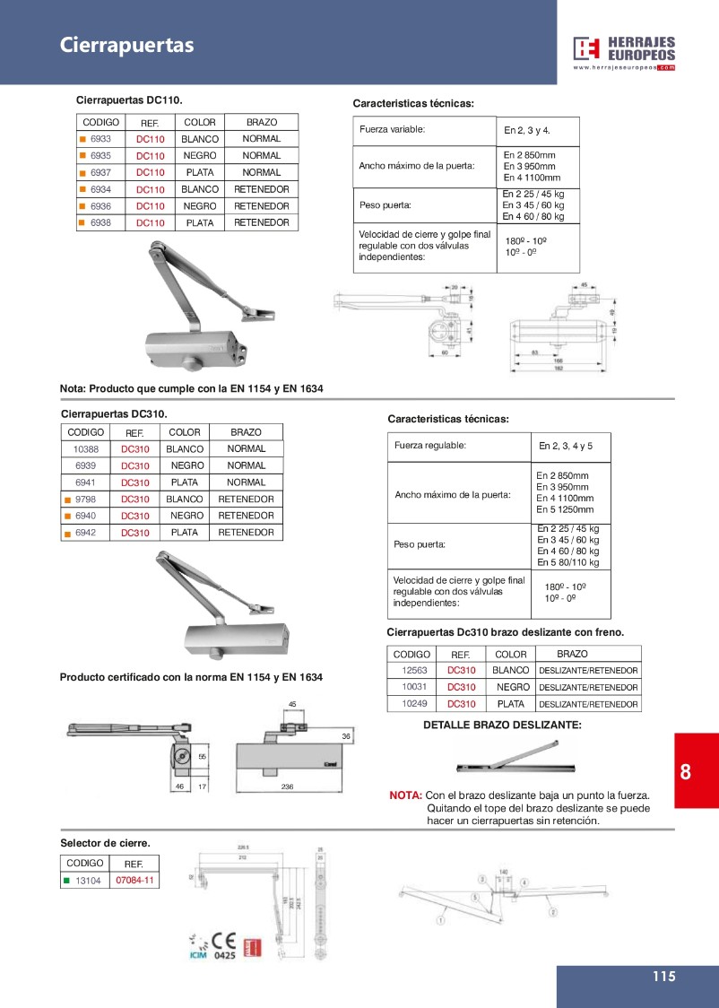 CIERRAPUERTAS - HERRAJES PARA ALUMINIO CANAL 16, MANILLAS CON Y SIN LLAVE, DISTRIBUIDOR PARA T&T Y WINK HAUS