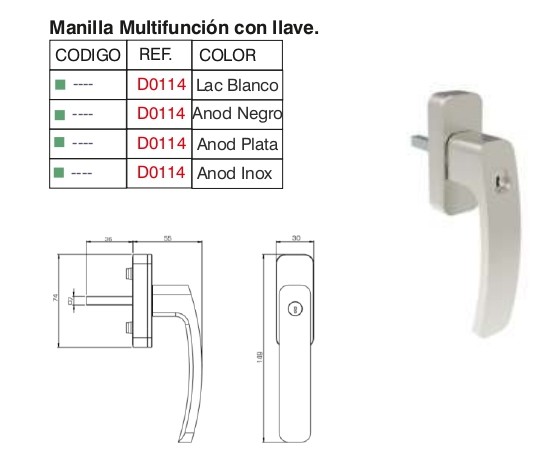 CON LLAVE - HERRAJES PARA ALUMINIO CANAL 16, MANILLAS CON Y SIN LLAVE, DISTRIBUIDOR PARA T&T Y WINK HAUS