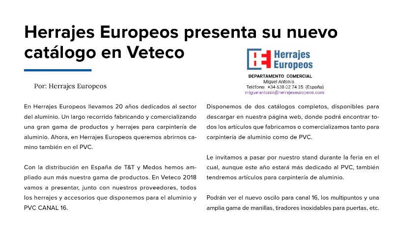 EMPRESA - HERRAJES PARA ALUMINIO CANAL 16, MANILLAS CON Y SIN LLAVE, DISTRIBUIDOR PARA T&T Y WINK HAUS