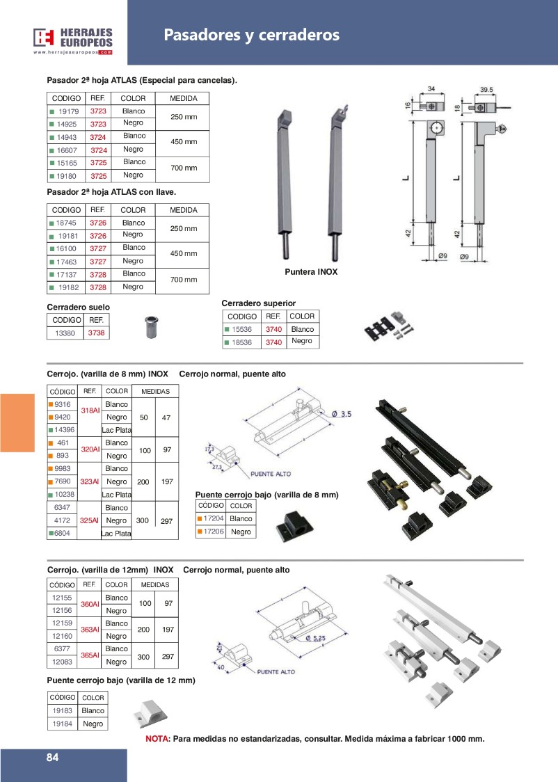 PASADOR SUPERPUESTO - HERRAJES PARA ALUMINIO CANAL 16, MANILLAS CON Y SIN LLAVE, DISTRIBUIDOR PARA T&T Y WINK HAUS