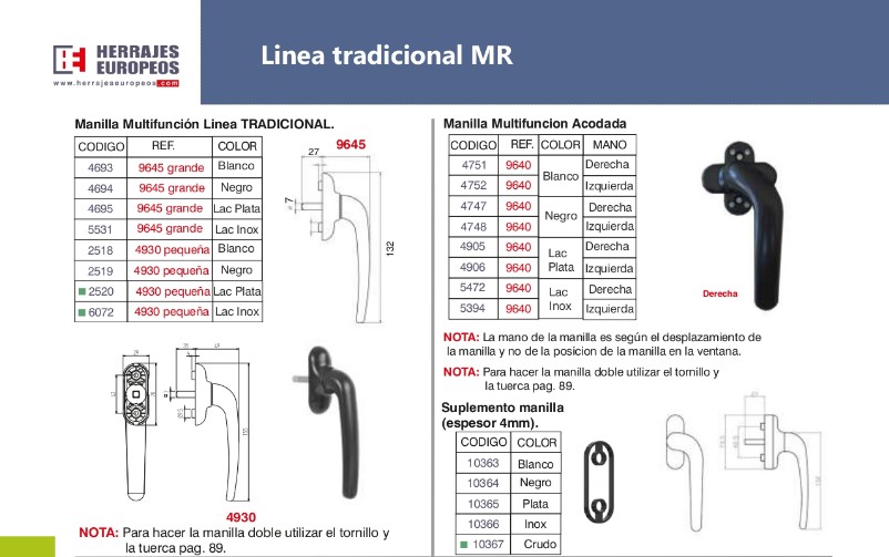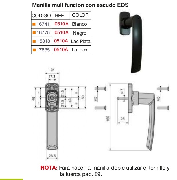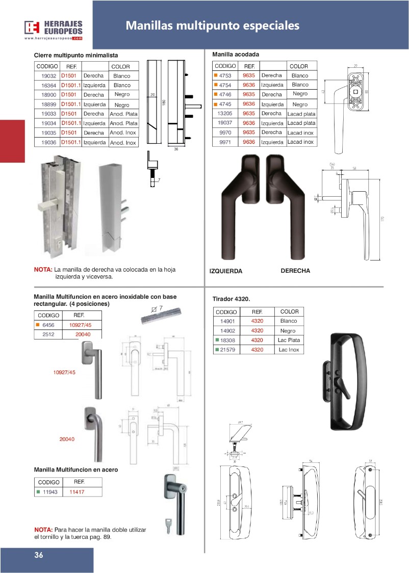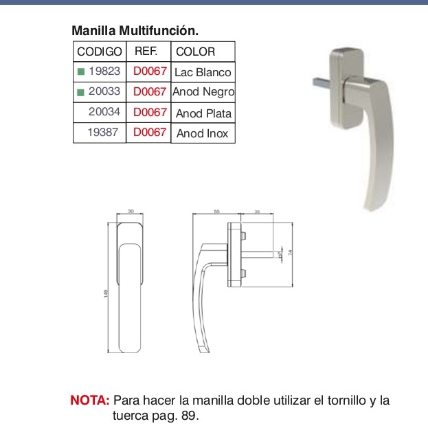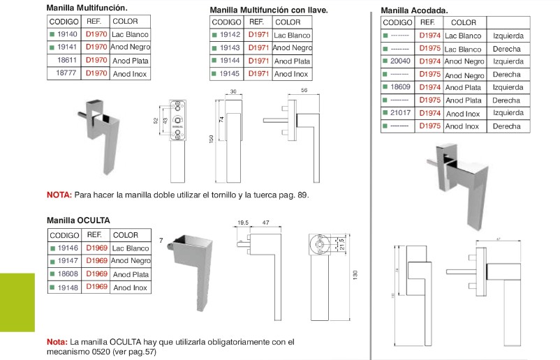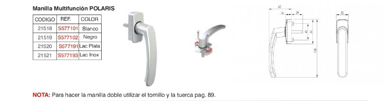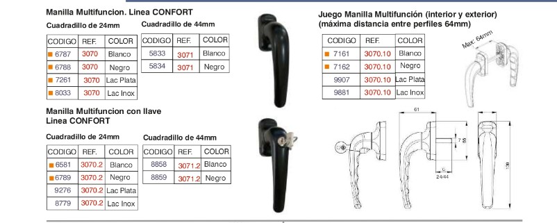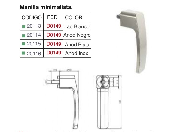SIN LLAVE - HERRAJES PARA ALUMINIO CANAL 16, MANILLAS CON Y SIN LLAVE, DISTRIBUIDOR PARA T&T Y WINK HAUS